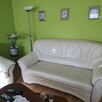 Sofa z możliwością spania plus 2 fotele, ze skóry naturalnej, kolor ecru. Stan dośc dobry, na bocznym oparciu jednego ...
